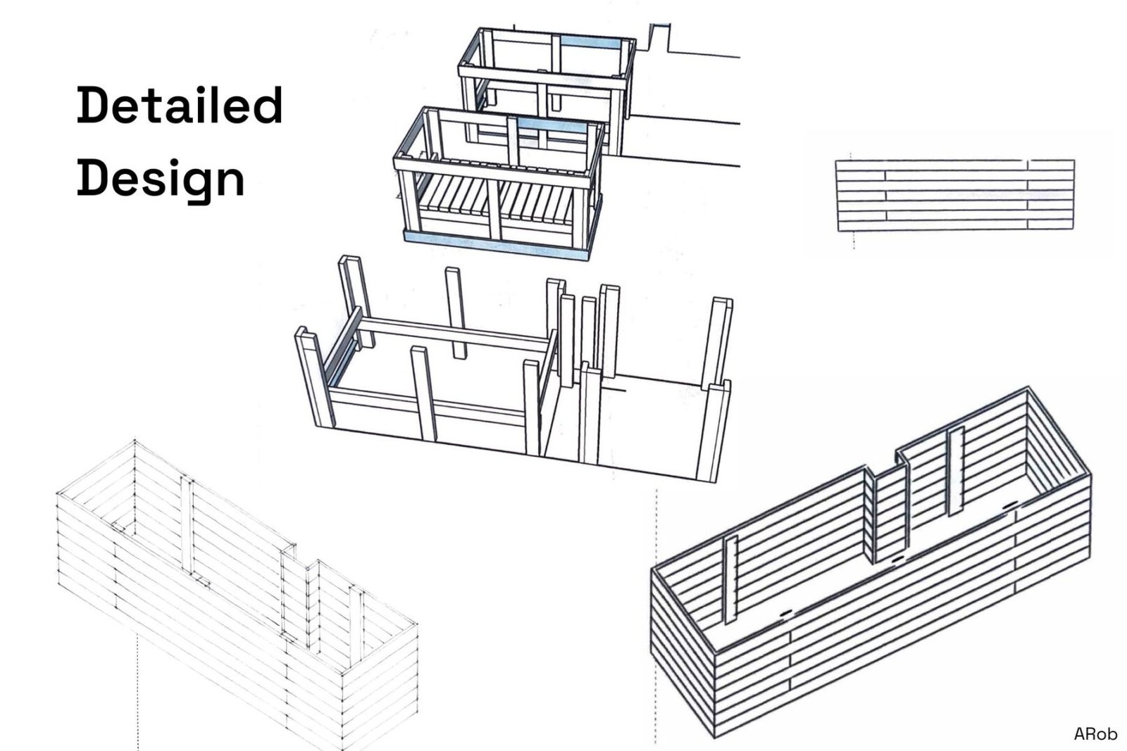 I designed the structure on SketchUp, which allowed me to estimate how many boards I’d need. It’s great to be able to create digital prototypes as pitfalls and issues can quickly be identified and solutions developed.