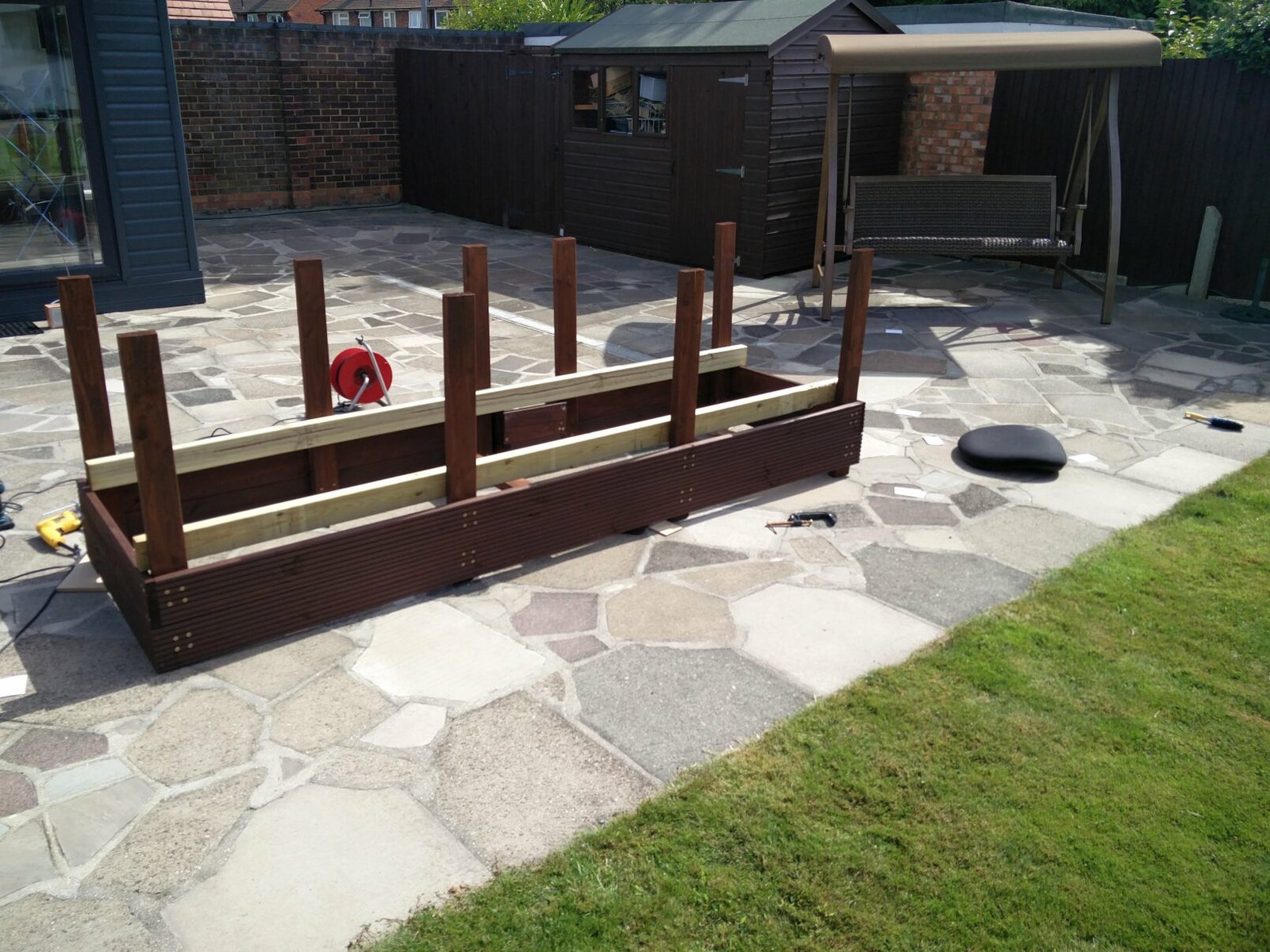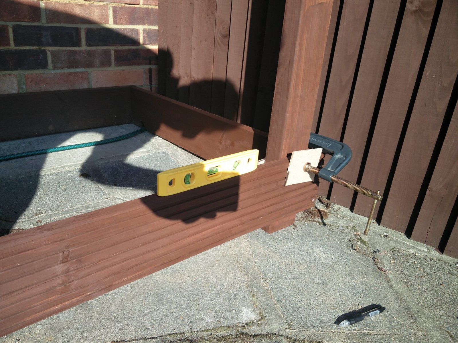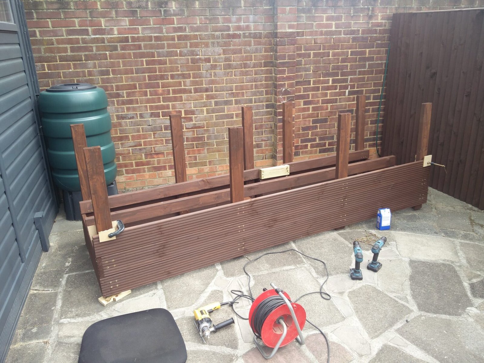 It is designed to be demountable – using galvanised screws and easily removable connections. The decking boards came to just around £130, for which I was very pleased to have the support of my Dad to pay for them! Tools were kept simple – a handsaw, electric drill and sander.
