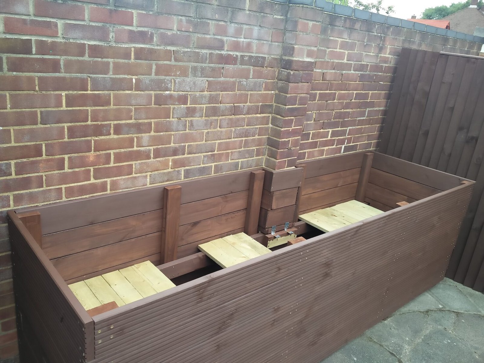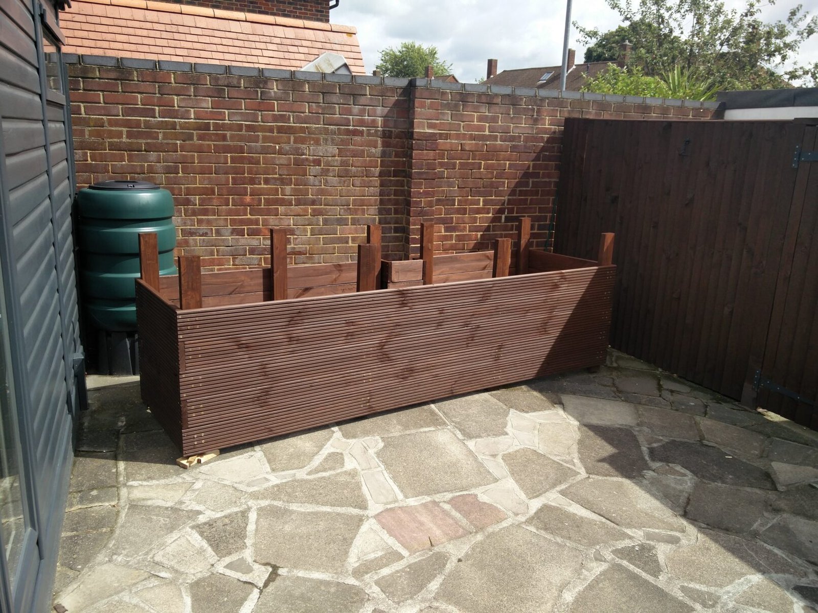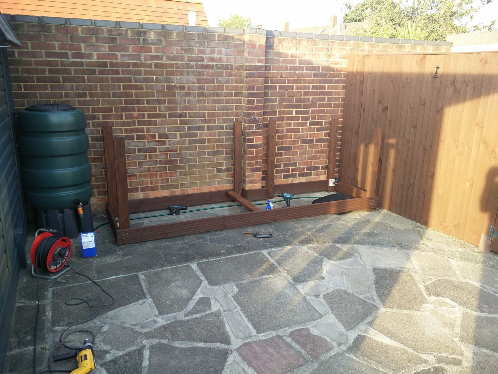 It is designed to be demountable – using galvanised screws and easily removable connections. The decking boards came to just around £130, for which I was very pleased to have the support of my Dad to pay for them! Tools were kept simple – a handsaw, electric drill and sander.